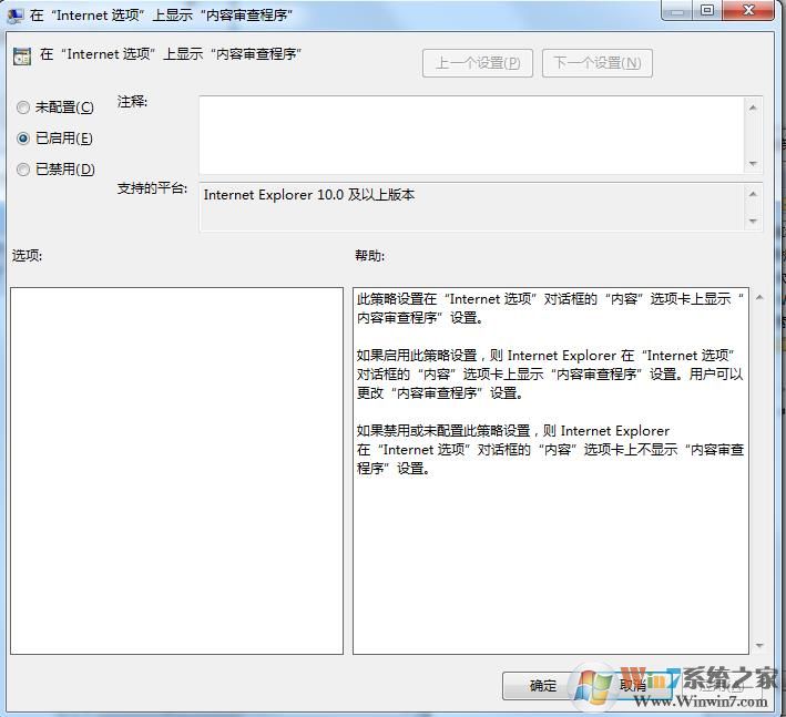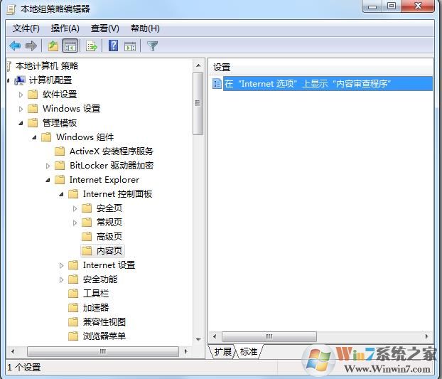 通過組策略可以讓internet選項(xiàng)重新顯示“內(nèi)容審查程序”;