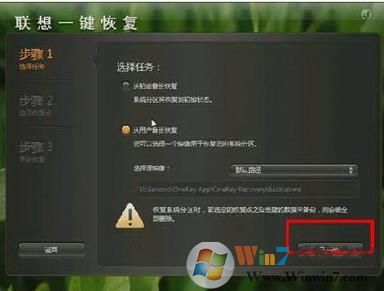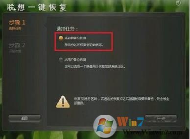 2、選擇:“從初始備份恢復(fù)”可以把系統(tǒng)恢復(fù)到出廠狀態(tài),單擊:“下一步”;