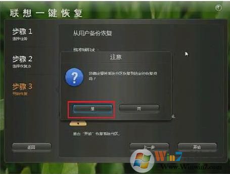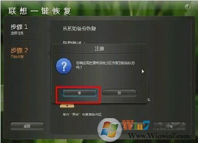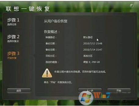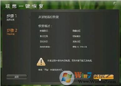 9、點(diǎn)擊開始(恢復(fù)過程中一定要接電源適配器,如果電池沒電會(huì)導(dǎo)致一鍵恢復(fù)無法使用);