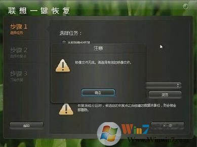 7、若用戶沒有備份過則會(huì)提示 映像文件無效提示;