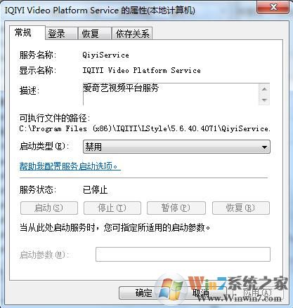 3、雙擊打開(kāi)IQIYI Video Platform Service服務(wù),設(shè)置啟動(dòng)類型為禁用,并停止服務(wù);