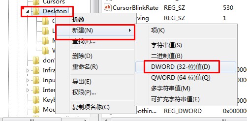 3、在右側(cè)窗口空白處單擊右鍵,新建一個(gè)“DWord 32位值”。