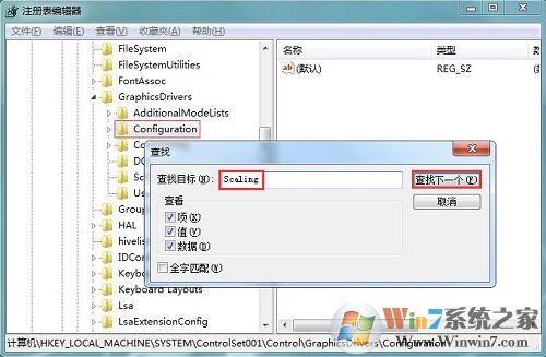 5、在彈窗的“查找”輸入框中輸入:Scaling,然后點擊“查找下一個”;