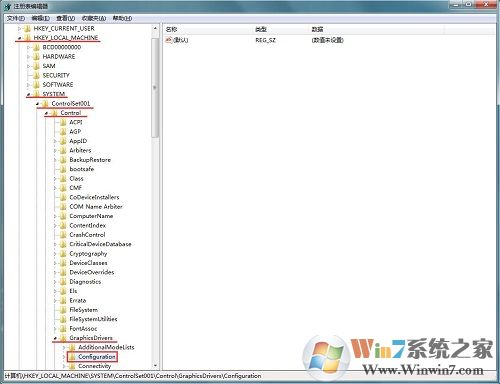 3、收起后,找到注冊表:HKEY_LOCAL_MACHINE\SYSTEM\ControlSet001\Control\GraphicsDrivers\Configuration\