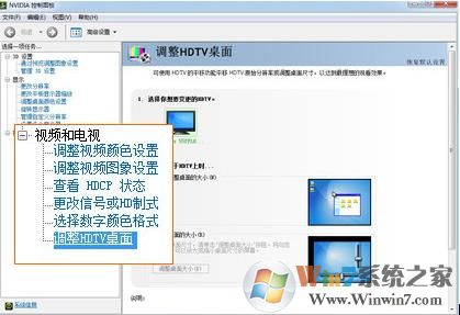 打開NVIDIA控制面板之后,在左側(cè)選擇”視頻和電視“中的”調(diào)整HDTV桌面“。