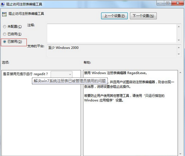 5、然后點(diǎn)擊應(yīng)用,這時(shí)我們?cè)侔碬IN+R 鍵在運(yùn)行框中輸入regedit 回車(chē) 濁試注冊(cè)表是否可以打開(kāi),一般來(lái)說(shuō)通過(guò)以上幾個(gè)步驟就可以完美解決win7系統(tǒng)無(wú)法打開(kāi)注冊(cè)表的問(wèn)題了,需要注意的一點(diǎn)是,如果你對(duì)注冊(cè)表操作不是十分熟悉,盡量不要亂修改注冊(cè)表,因?yàn)楦腻e(cuò)了小則系統(tǒng)故障,重則win7系統(tǒng)無(wú)法啟動(dòng),正是注冊(cè)表的重要性,在策略組中才會(huì)有阻止修改注冊(cè)表這一選項(xiàng)。