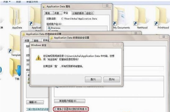 4、點(diǎn)擊確定后,系統(tǒng)會確認(rèn)你是否要更改,在彈出的對話框中我們選擇“是,這時候該文件夾的所有者就更改為你設(shè)置的帳戶了。