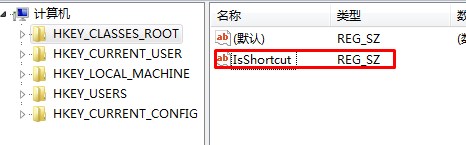 3、添加一個(gè)字符串值:IsShortcut ,不需要填寫串值,回車即可