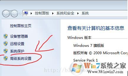 3、進入高級系統(tǒng)設(shè)置選項,點擊;win7旗艦版m.cncxm.com