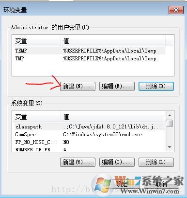 4.在環(huán)境變量下點擊“新建”如下圖:
