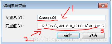 (2)變量值:.;C:\Java\jdk1.8.0_121\lib\dt.jar;C:\Java\jdk1.8.0_121\lib\tools.jar