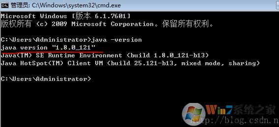 (3)顯示 Java version"1.8.0_121“即為環(huán)境變量配置成功!
