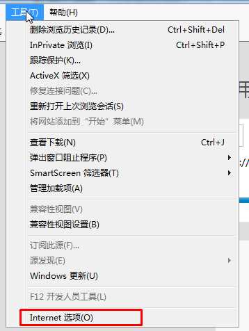 1、打開IE瀏覽器,然后點(diǎn)擊菜單欄上的【工具】,選擇【Internet選項(xiàng)】;win7系統(tǒng)之家 m.cncxm.com