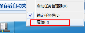 1、在win7系統(tǒng)任務(wù)欄空白處右擊,選擇屬性;