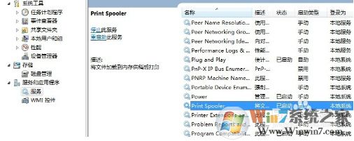 2、在服務(wù)和應(yīng)用程序中點擊服務(wù),并找到print spooler服務(wù):
