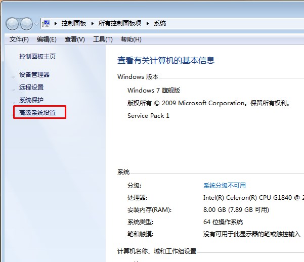 2、在系統(tǒng)信息窗口中,點(diǎn)擊左側(cè)的“高級(jí)系統(tǒng)設(shè)置”選項(xiàng);