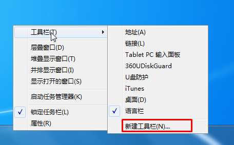1、然后再任務(wù)欄空白處單擊右鍵,選擇“工具欄”—“新建工具欄”;