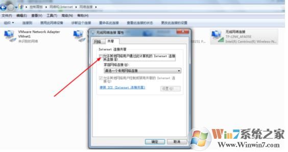 5.網(wǎng)絡(luò)和共享中心——無(wú)線網(wǎng)絡(luò)——屬性——共享——允許其他網(wǎng)絡(luò)用戶通過(guò)Inenter鏈接