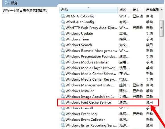 3、雙擊打開之前錯誤提示的 服務(wù),如小編這里提示“windows font cache service”服務(wù)那么則雙核打開windows font cache service服務(wù);