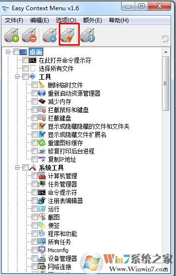 1、下載小編之前分享過的:Win7右鍵菜單管理工具