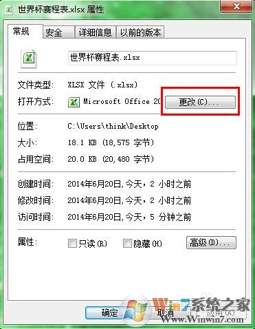 2.在屬性常規(guī)頁(yè)面下,打開(kāi)方式:點(diǎn)擊 更改 按鈕。