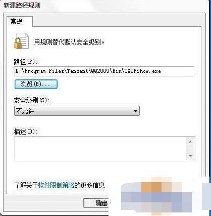 其實(shí)很簡(jiǎn)單:開始--運(yùn)行--輸入“Gpedit.msc”打開組策略,依次展開計(jì)算機(jī)配置--Windows 設(shè)置--安全設(shè)置--軟件限制策略(這里如果沒有設(shè)置過的朋友需要右鍵點(diǎn)一下新建)--其他規(guī)則,在這里點(diǎn)右鍵新建路勁規(guī)則,分別找到安裝QQ的路徑下的TXOPShow.exe,TXPlatform.exe,QQPetAgent.exe這三個(gè)文件,建三個(gè)規(guī)則,不允許運(yùn)行!OK,搞定,重新打開QQ,看一下進(jìn)程,沒了吧!這個(gè)方法大家可以舉一反三,可以限制一些軟件運(yùn)行!