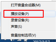 1、桌面右下角音量小圖標(biāo),右鍵---播放設(shè)備