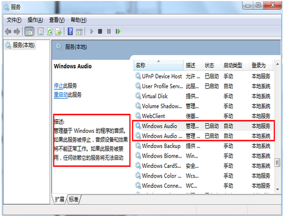 2、有關(guān)于系統(tǒng)聲音的服務(wù)模塊被禁用