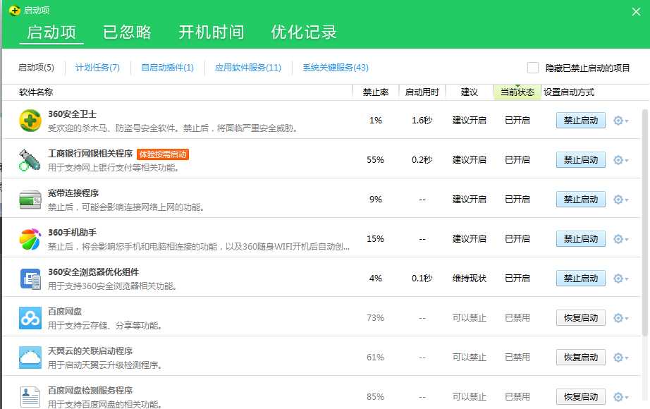 以上是一種方法,當(dāng)然也還可以用電腦管理軟件,如360安全衛(wèi)士來(lái)修改啟動(dòng)項(xiàng),禁止一些軟件啟動(dòng),如360安全衛(wèi)士——》優(yōu)化加速——》啟動(dòng)項(xiàng):