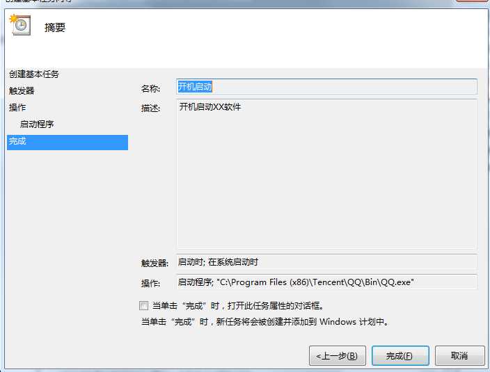 8、完成開機(jī)啟動軟件的任務(wù)創(chuàng)建;