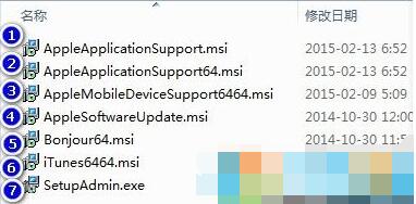 3、將安裝包解壓,然后按以下方試安裝:(小編是安裝到AppleMobileDeviceSupport6464.msi就同樣的問(wèn)題出來(lái)了。)