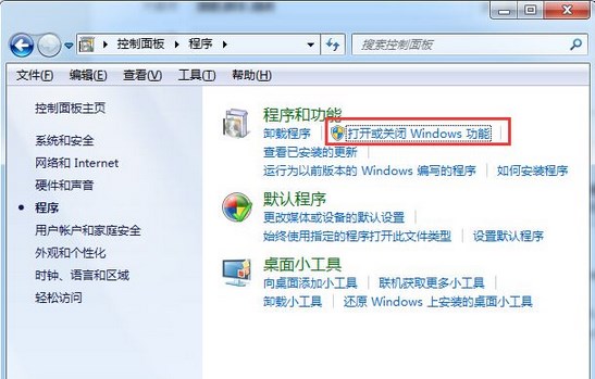 1、打開控制面板,點擊“程序”,然后點擊“打開或關(guān)閉Windows功能”,如下圖: