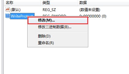 5、右鍵WriteProtect選擇修改,將基數(shù)選為十六進(jìn)制,數(shù)值改成0,點(diǎn)擊確定,