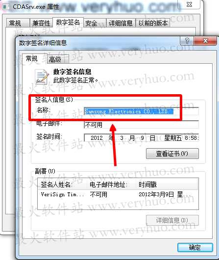 但簽名是【Samsung Electronics CO., LTD.】,VeriSign Time Stamping Services Signer - G2,如下圖: