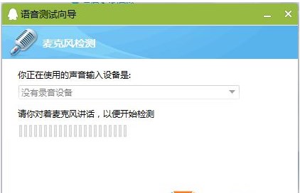 在如QQ聊天軟件上進(jìn)行音頻測試向?qū)?,測試麥風(fēng)是否設(shè)置正確。如下圖(錄音設(shè)備要選擇好)