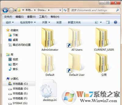 8、現(xiàn)在雙擊“Documents and Setting文件夾”,就能打開(kāi)了,如圖所示: