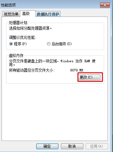 右擊我的電腦->“高級(jí)”選項(xiàng)卡->“性能”設(shè)置 -> “高級(jí)”->“虛擬內(nèi)存”,設(shè)置完成需要重啟一次電腦才能生效