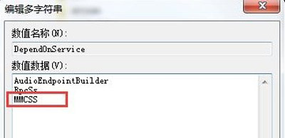 3、在編輯多字符串窗口中,把數(shù)值數(shù)據(jù)修復(fù)的“MMCSS”刪除,然后點(diǎn)擊確定即可。