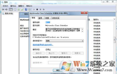 5、在服務(wù)列表中找到“Multimedia Class Scheduler”將其停止并禁用,再進(jìn)入游戲應(yīng)該就不會延遲了。