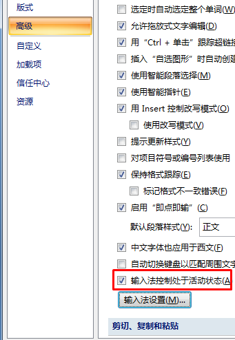 在“選項(xiàng)”窗口,單擊“高級(jí)”,然后從右側(cè)細(xì)節(jié)窗口找到“輸入法控制處于活動(dòng)狀態(tài)”,將其勾選。