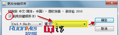 彈出“文本服務(wù)和輸入語(yǔ)言”窗口后,切換到“高級(jí)鍵設(shè)置”選項(xiàng)卡。選中一項(xiàng)操作(如語(yǔ)言切換或全半角切換),然后單擊“更改按鍵順序”按鈕進(jìn)入自定義窗口。