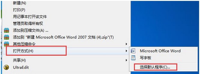 1、右鍵點(diǎn)擊需要重新關(guān)聯(lián)的文件,然后選擇“打開(kāi)方式”,并在子菜單中點(diǎn)擊“選擇默認(rèn)程序”;