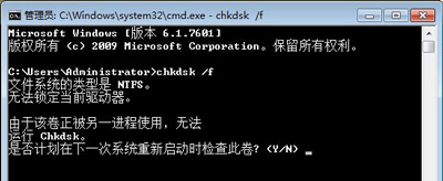 3、之后會提示是否計劃在下次系統(tǒng)重新啟動時檢查這個卷,輸入“Y”按下回車,然后重啟計算機進行檢查修復。