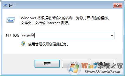 第一步、進入win7系統(tǒng)后,我們使用快捷鍵按下win+r,并在運行窗口,直接輸入“regedit”點擊確定;