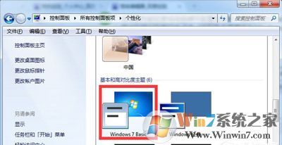 3、接著從打開的“個(gè)性化”界面中,點(diǎn)擊“基本和高對(duì)比度主題”欄目中的“Windows7 Basic”主題并應(yīng)用即可。