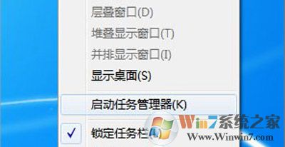 9、當(dāng)然,我們可以通過結(jié)束不常使用的后臺(tái)進(jìn)程來提升電腦的性能。右擊“任務(wù)欄”,從彈出的右擊菜單中選擇“啟用任務(wù)管理器”項(xiàng)。