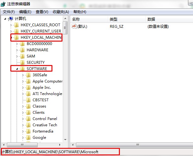 2、在注冊表編輯器中依次定位到:KEY_LOCAL_MACHINE/Software/Microsoft/WindowsCurrentVersionexplorerAdvancedFolderHiddenSHOWALL;