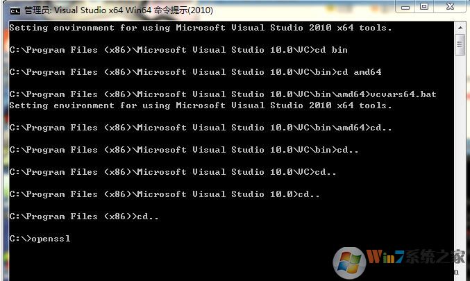 14、再次將命令提示符定位到 openssl源碼目錄下 cd C:\openssl