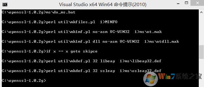 接著實(shí)現(xiàn)命令:perl Configure VC-WIN64 no-asm --prefix=C:\openssl