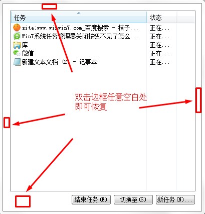 只要雙擊任管管理器的邊框即可,如下圖紅圈所示: